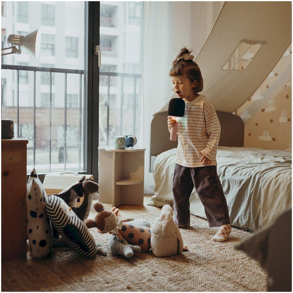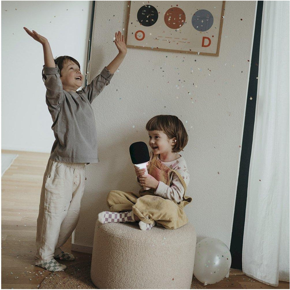 O KIDYMIC é o microfone tudo-em-um perfeito para sessões de karaokê!