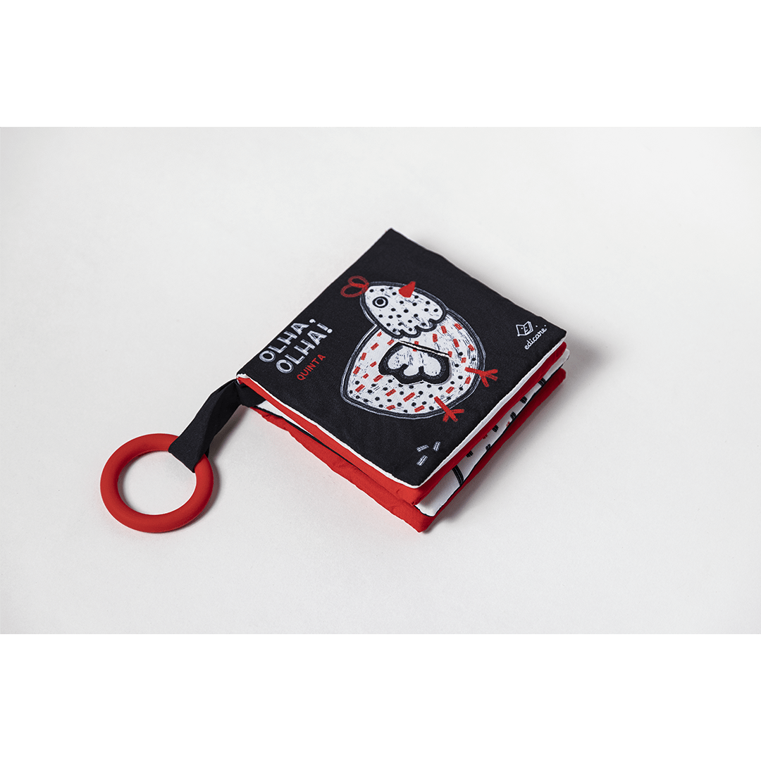✨Com texturas suaves e imagens de alto contraste (preto, branco, vermelho e amarelo), o bebé pode agarrar, apertar e levar o livro à boca, explorando-o de forma segura e divertida.