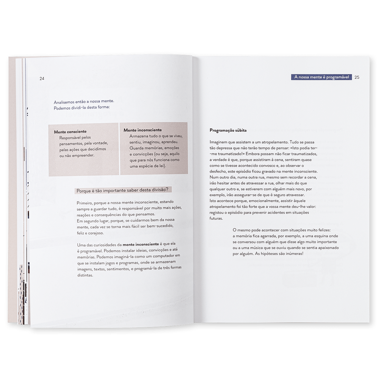 O livro explora como programar a mente para alcançar o sucesso, seja em tarefas diárias, apresentações públicas ou desafios escolares.