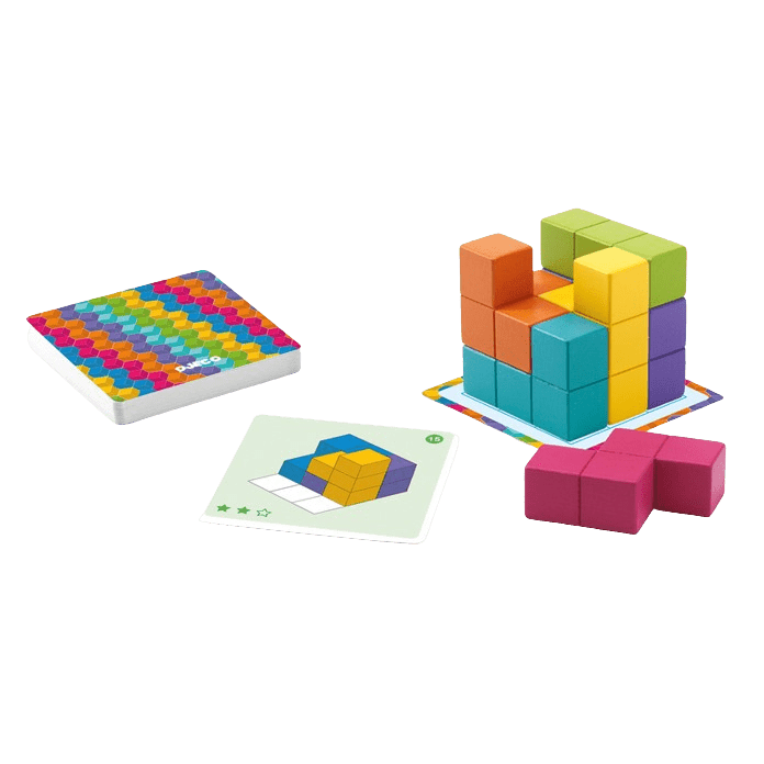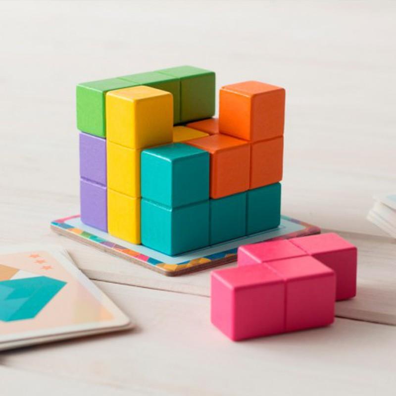 🎲 Este jogo envolvente inclui 7 peças de madeira que precisam ser rearranjadas para formar um cubo perfeito. 🤔
